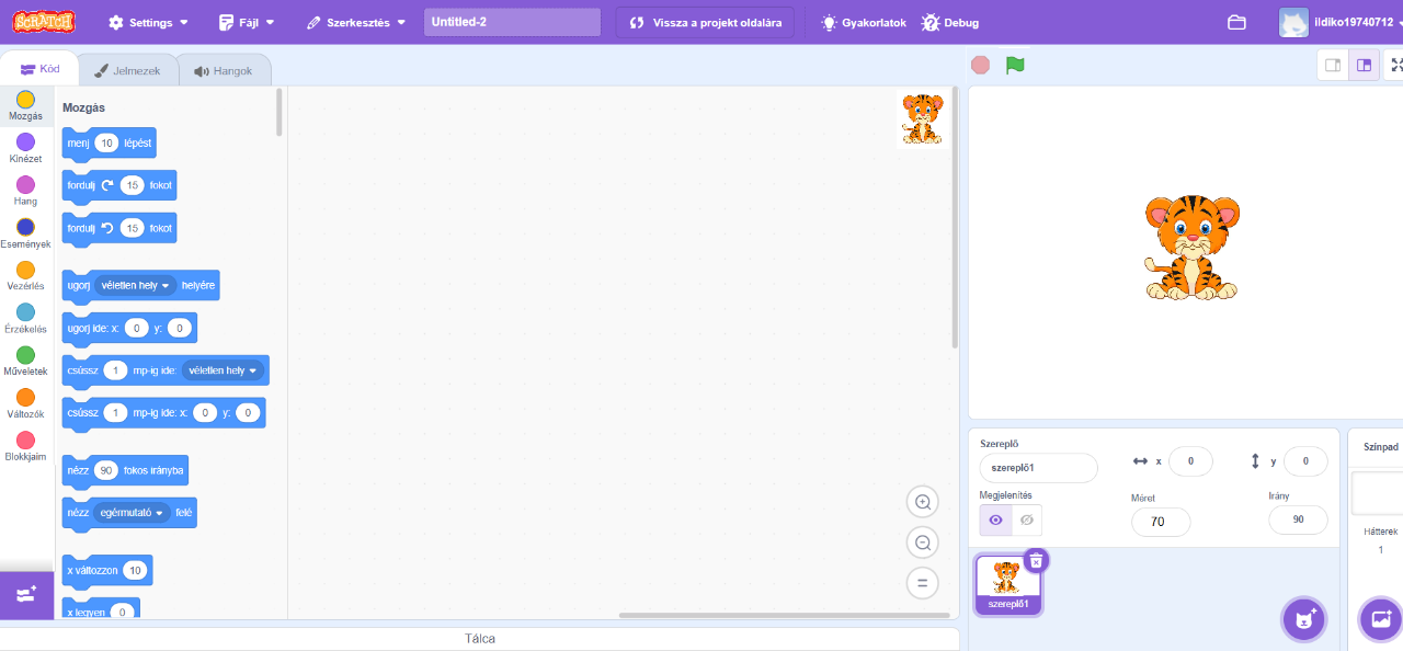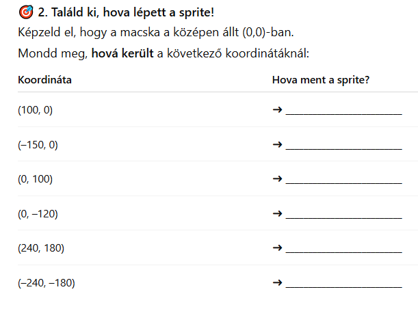 - Adj neki is kezdőkoordinátát, a képernyő jobb alsó sarkába helyezd el!