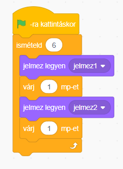 - Ha rákattintunk a dinóra, váltogassa végig a jelmezeit 1 mp-enként, összesen háromszor ismételve.