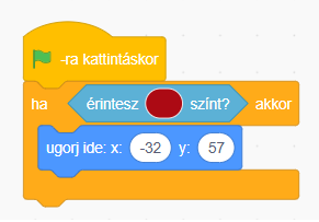 j, A szereplő ha érinti a bordó színt, akkor a -32; 57 koordinátára ugrik át: