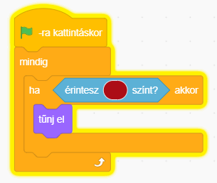 k, A szereplő ha érinti a bordó színt, akkor eltűnik: