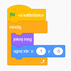 m, A játék indulásakor jelenjen meg a szereplő az 1; -5 koordinátán: