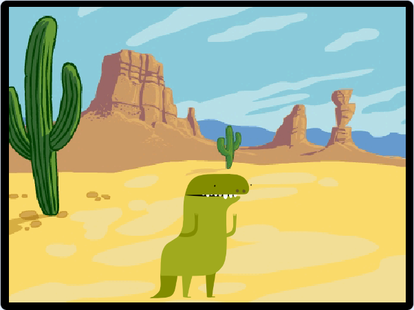 - A játék folyamán mindig, ha nekimegy a dinó a nagy kaktusznak, mondja azt, hogy: Jujj, ez fáj!, egyébként pedig gondolja azt, hogy: Szép ez a táj!